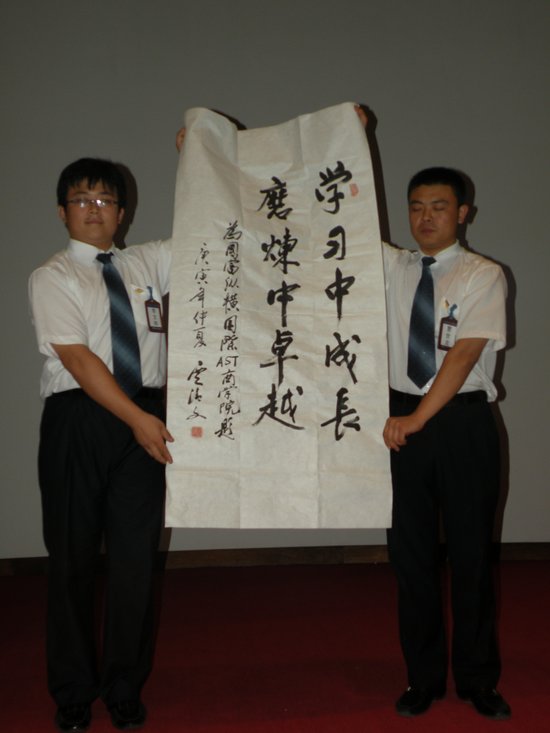 上圖:賈清文理事長(zhǎng)為國(guó)際·AST商學(xué)院題詞