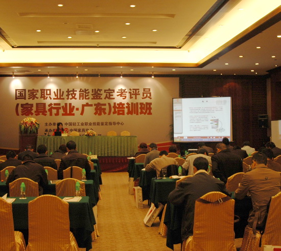 2010年12月17日國(guó)家職業(yè)技能鑒定考評(píng)員(家具行業(yè)·廣東)培訓(xùn)班在廣東東莞厚街嘉華大酒店順利召開,來自廣東、江蘇各地家具協(xié)會(huì)、家具企業(yè)、家具林業(yè)院校共44名學(xué)員參加了此次培訓(xùn)班,特別感謝中國(guó)家具協(xié)會(huì)、廣東東莞名家具俱樂部、廣東省家具協(xié)會(huì)和廣州市家具協(xié)會(huì)和江蘇農(nóng)林職業(yè)技術(shù)學(xué)院,廣東順德龍江職業(yè)技術(shù)學(xué)校、廣東順德研發(fā)院、廣東東莞市大嶺山職業(yè)技術(shù)學(xué)校、廣東東莞國(guó)際名家具設(shè)計(jì)研發(fā)院、聯(lián)邦家私集團(tuán)、廣東東莞市大嶺山家具協(xié)會(huì)、廣東厚街專業(yè)技術(shù)學(xué)校等10余家家具協(xié)會(huì)和企業(yè)的鼎力支持和大力幫助。