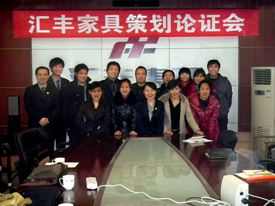 2011年1月7日,國富縱橫總裁趙龍、執(zhí)行總監(jiān)、設(shè)計總監(jiān)等一行6人奔赴唐山,與匯豐家具高層召開了項目論證會,為企業(yè)指點迷經(jīng),送去打開匯豐振興之門的金鑰匙。
