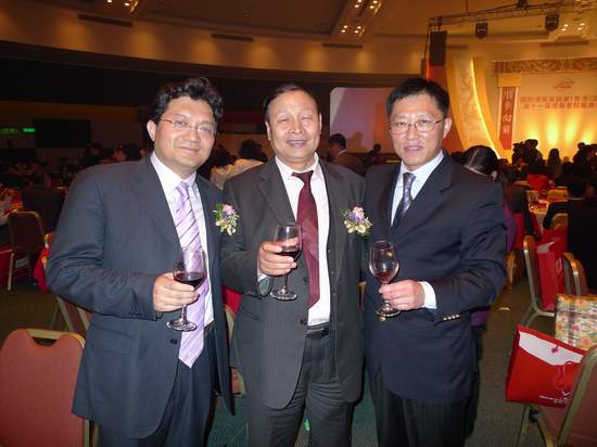 上圖:趙龍總裁(左)、明珠集團董事長李繼和(中)、深圳家協秘書長侯克鵬(右)