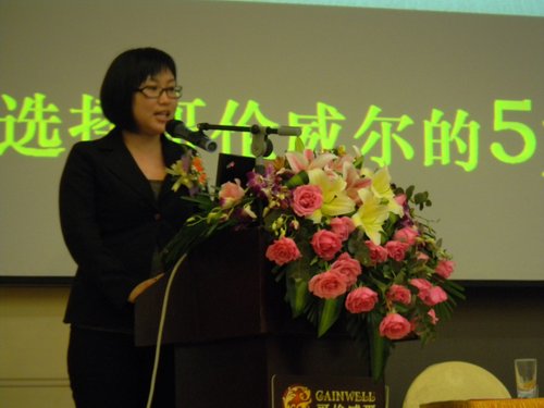 上圖:國富縱橫美盈項目負(fù)責(zé)人田女士作哥倫威爾品牌推介