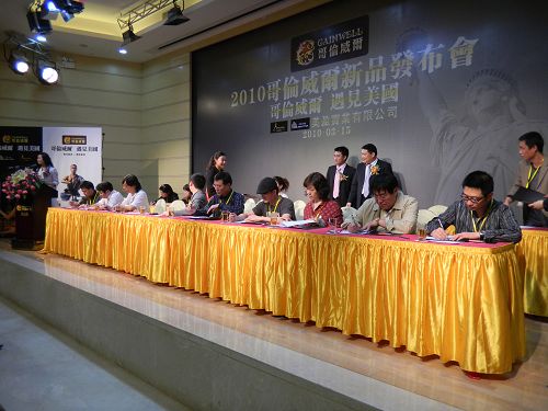 3月15日,廣東省商標(biāo)GAINWELL哥倫威爾強勢推出古典小美式系列——亞美利加,在業(yè)內(nèi)驚起來一片震動。在廣東中山舉行的2010哥倫威爾新品發(fā)布會上,美盈實業(yè)總裁黎偉良和銷售總監(jiān)葉文超對哥倫威爾品牌和新產(chǎn)品做了詳細(xì)闡述,北京國富縱橫咨詢公司總裁趙龍博士、簡愛家居總裁羅輯莉、中國品牌營銷學(xué)會秘書長李易洲等嘉賓出席祝賀,近兩百名經(jīng)銷商和十幾家媒體參加本次活動,現(xiàn)場簽約經(jīng)銷商達(dá)五十多家,一炮而紅。